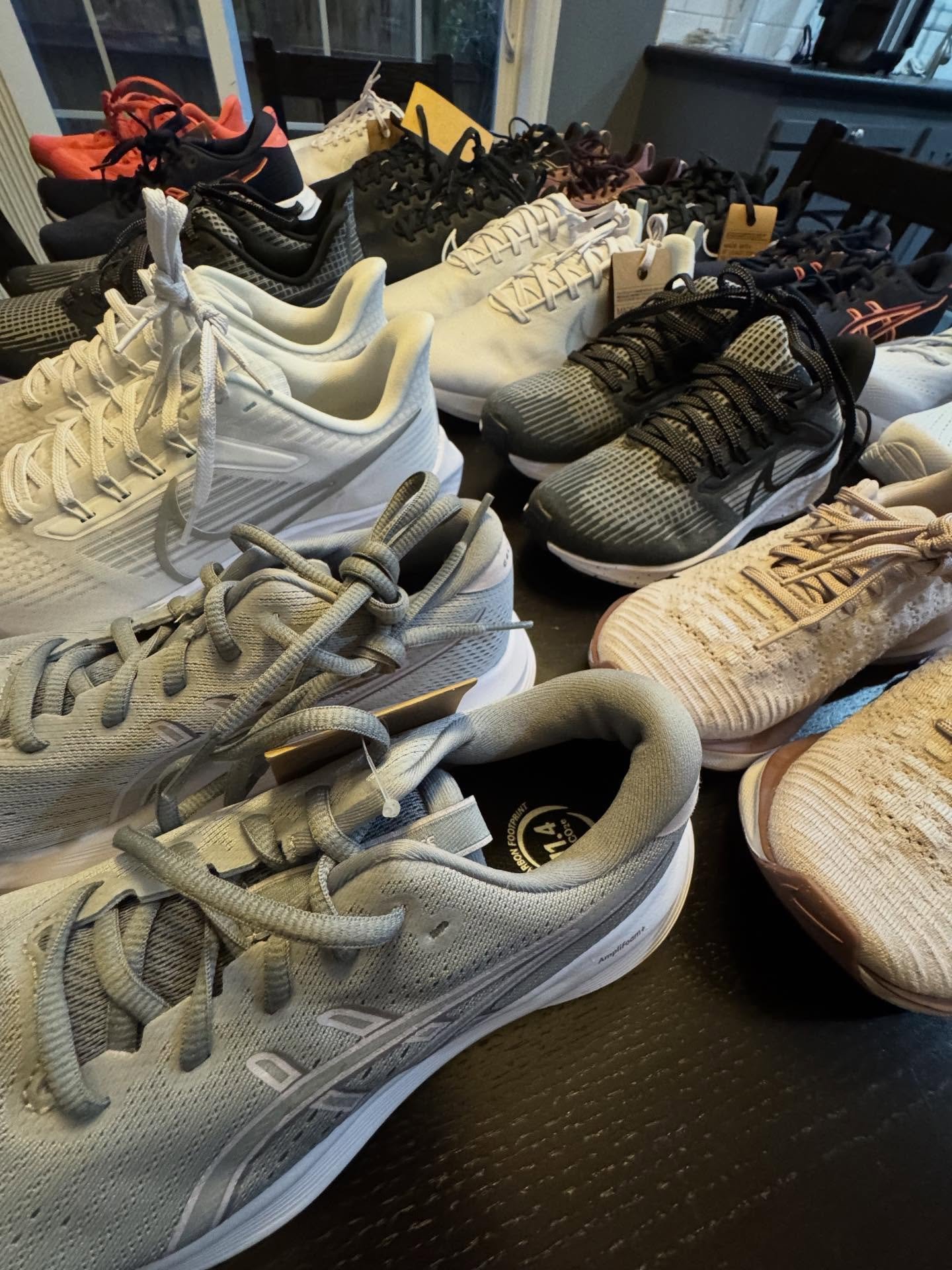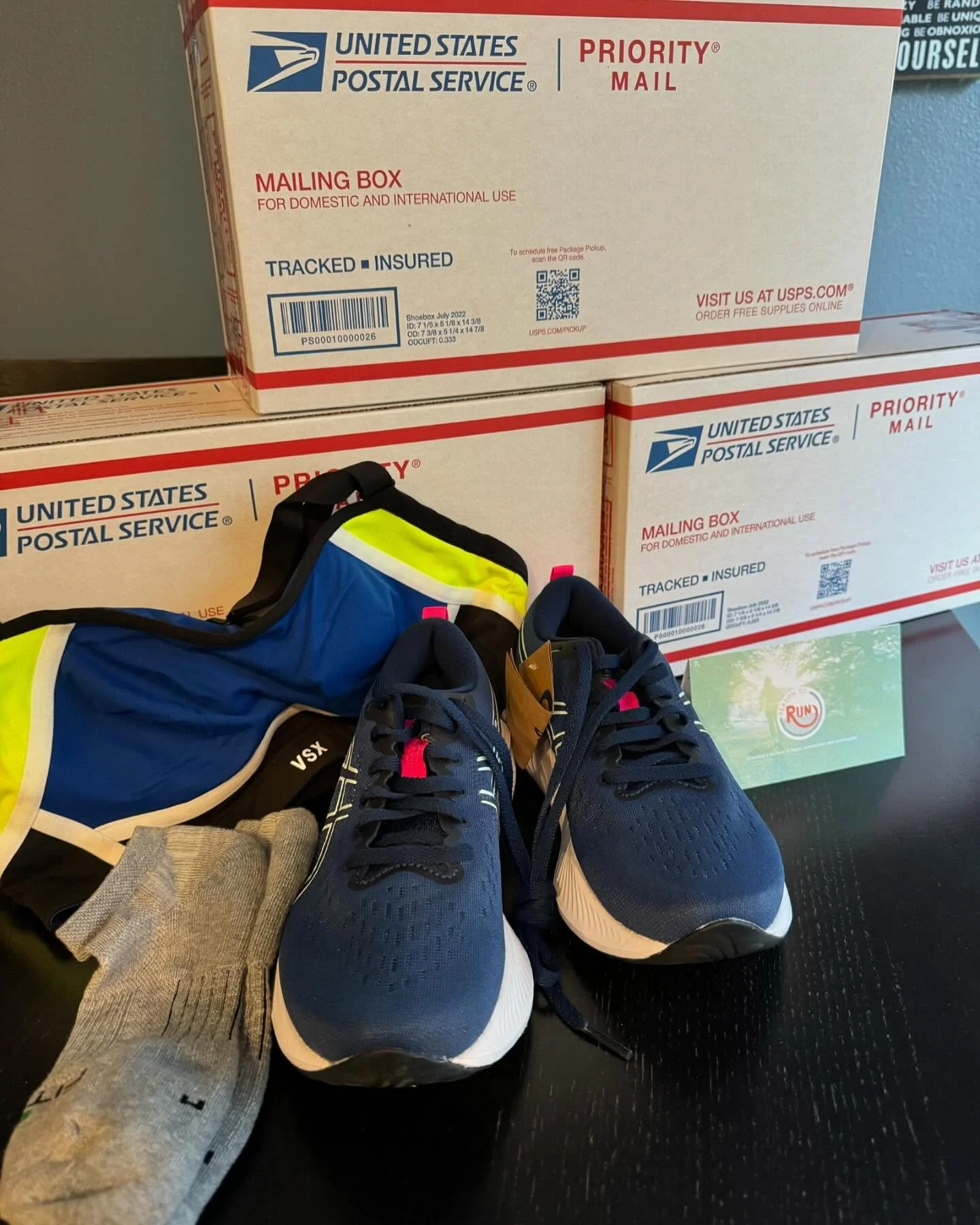 Post-release run care package including running shoes, sports bra, socks, and more!