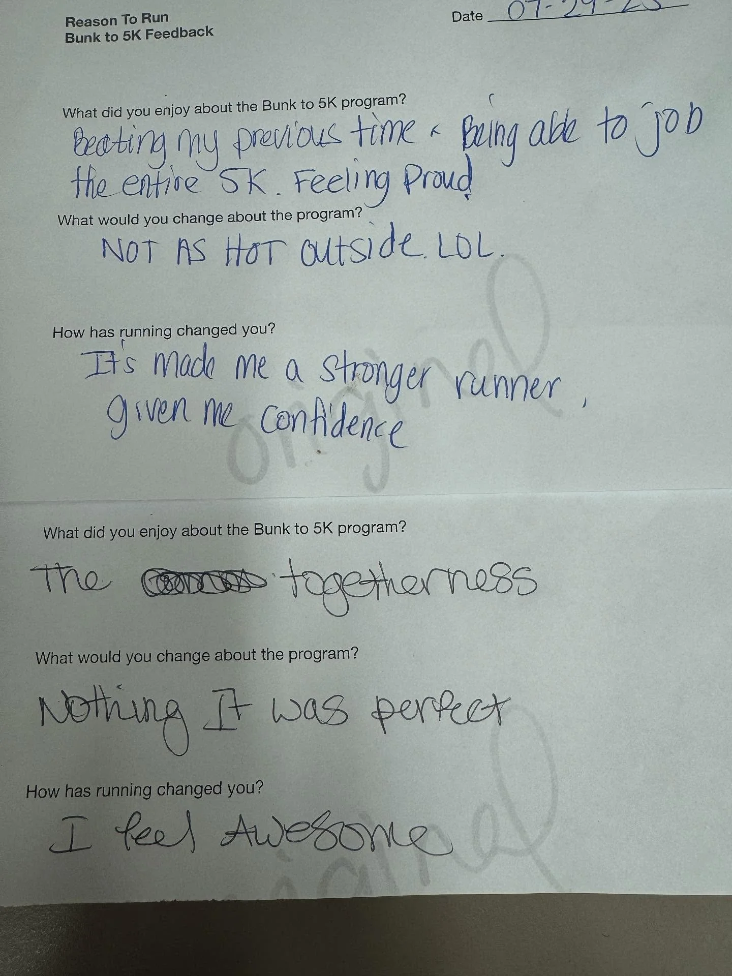 "I can run now without feeling like I am going to die. I never thought I could run 5K and I did it."